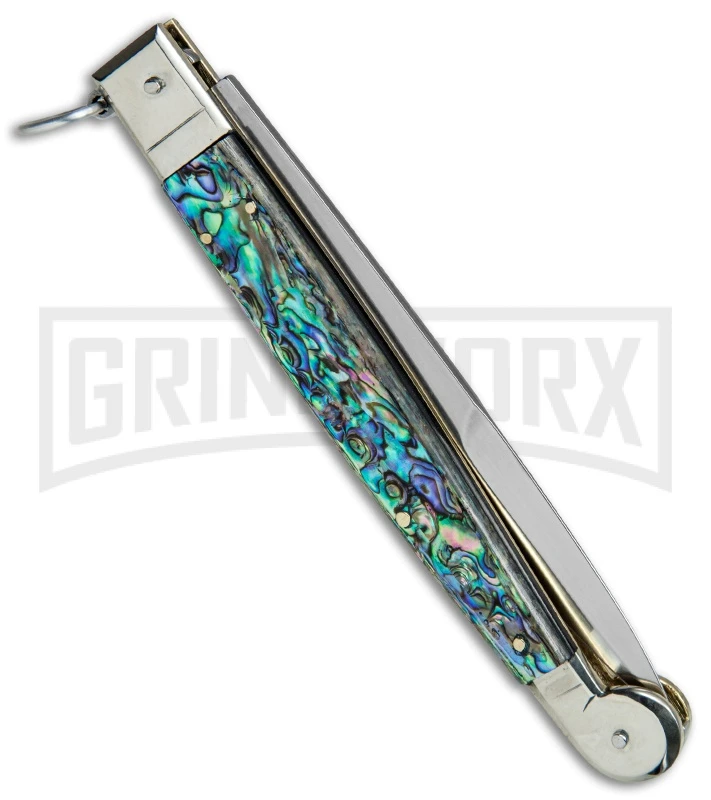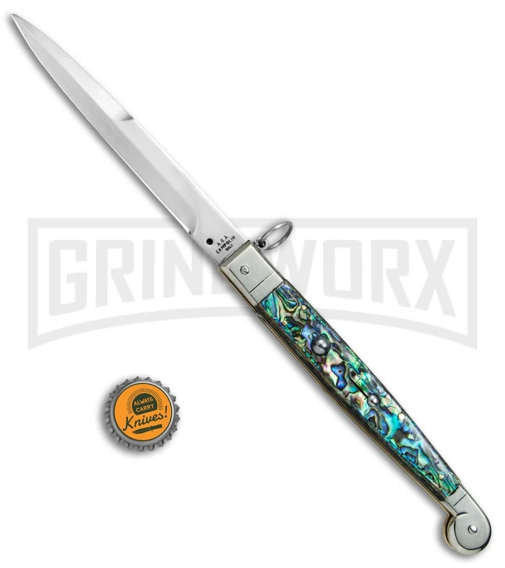 A.G.A. Campolin 9″ Abalone Sicilian Ring Pull Automatic Knife – Bayonet